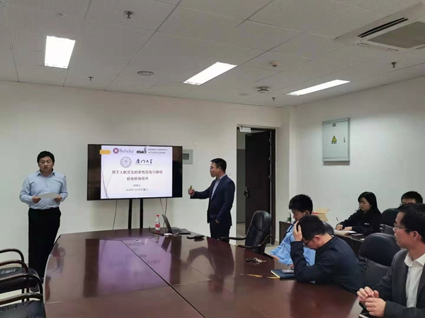 2020年1月7日,加州大学伯克利分校钟俊文博士来我系交流,并做题为《Flexible Piezoelectric/Electrostatic Transducers for Human-Machine Interactivity》的学术讲座报告。报告由郑高峰副教授主持,系主任张建寰教授,系副主任王奕首副教授,郑建毅副教授、柳娟副教授、刘益芳副教授以及研究生到现场聆听报告并进行交流。